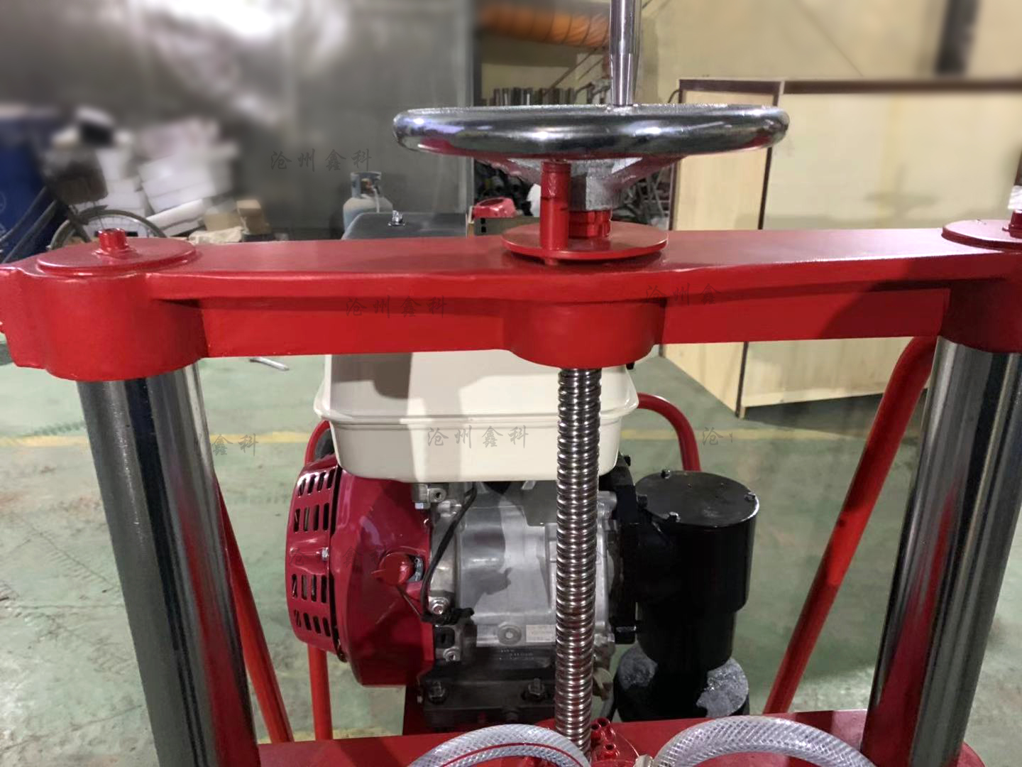 5、開孔:以上作業(yè)做好后,即可開孔作業(yè),裝上鉆頭,起動(dòng)汽油機(jī)(詳情見汽油機(jī)用戶手冊(cè))把進(jìn)水管放入水桶內(nèi),水桶要提到高出水泵位置,然后手捏氣襄把水吸入水泵,水泵上水后把水桶放在地面即可。油門調(diào)至最大,開始輕搖給進(jìn)手柄,使鉆頭緩慢接觸地面。開孔要訣:先給水后鉆進(jìn),給進(jìn)速度要慢,鉆壓要小。嚴(yán)禁無水作業(yè),以免燒壞鉆頭和水封。