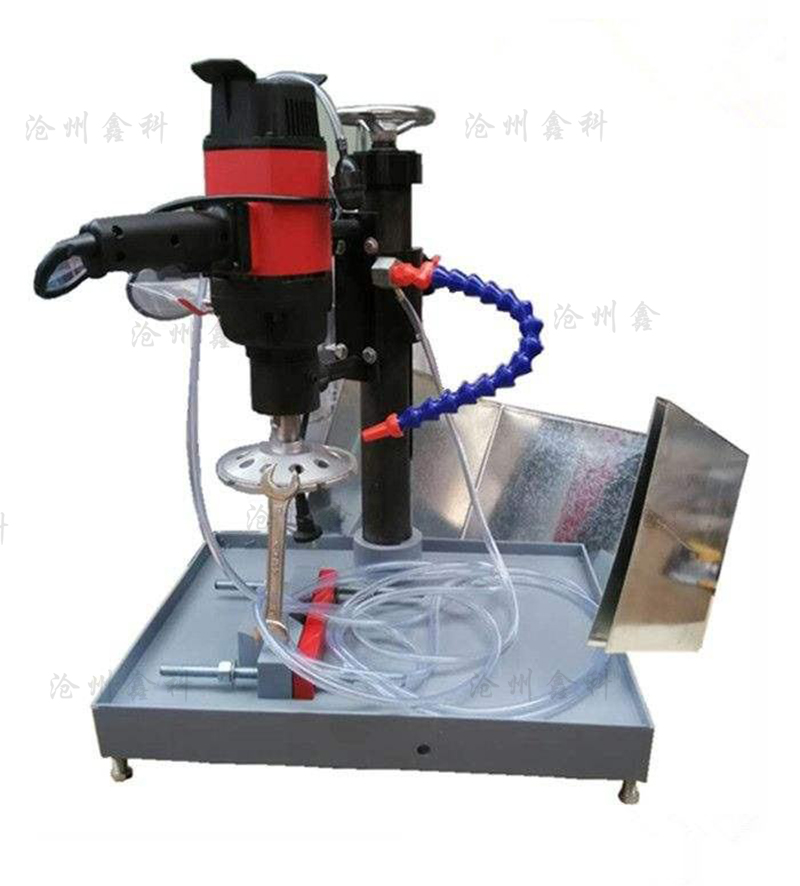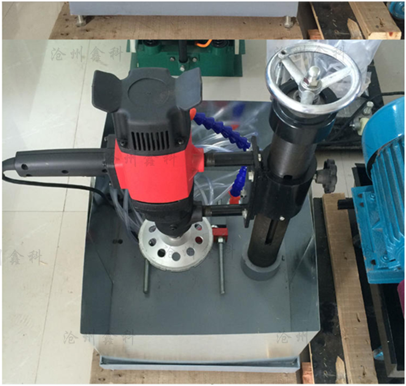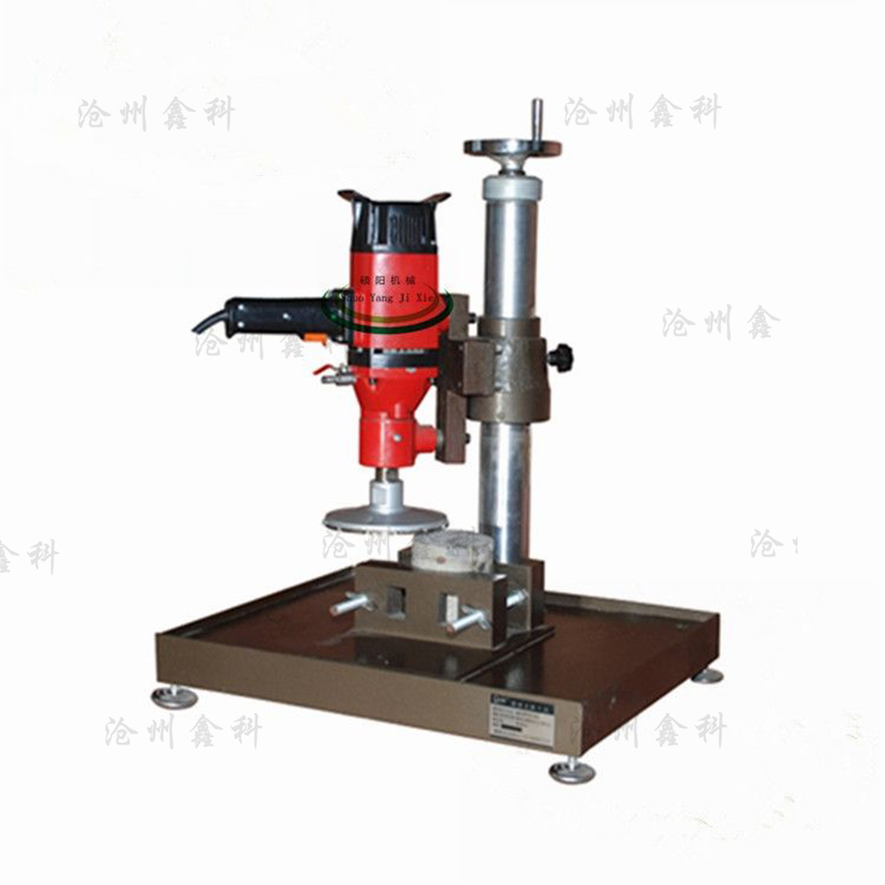 本機是依靠裝有金剛石刃具的平面磨頭,在告訴轉速的情況下實現混凝土芯樣的端面磨削目的,該機采用圓立柱導軌和絲杠升降手動給進方式,保證了磨頭工作平穩,可靠。