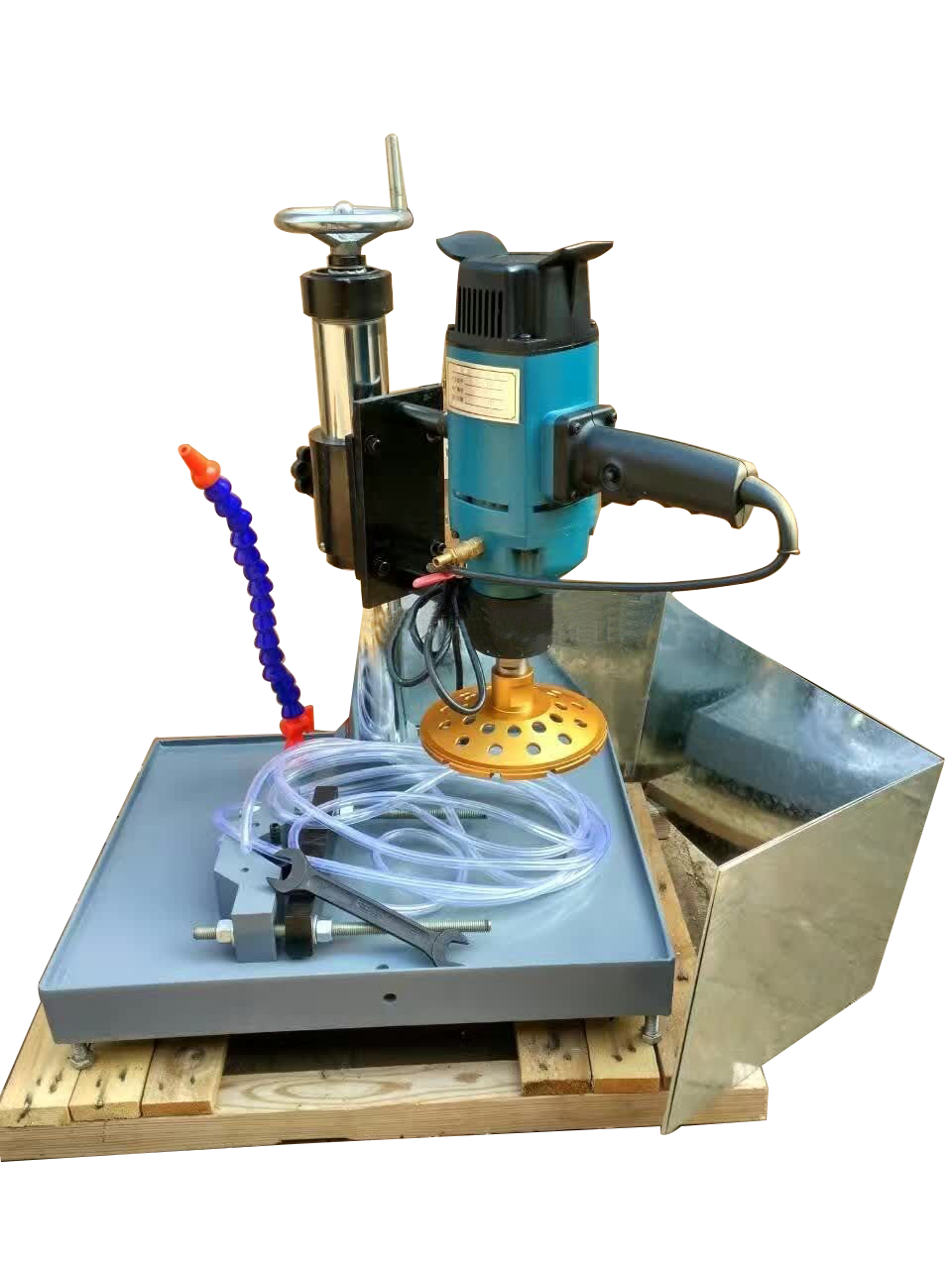 3、開啟進水咀閥門通水,放好防濺水罩并閉合電源開關,使磨頭旋轉。
